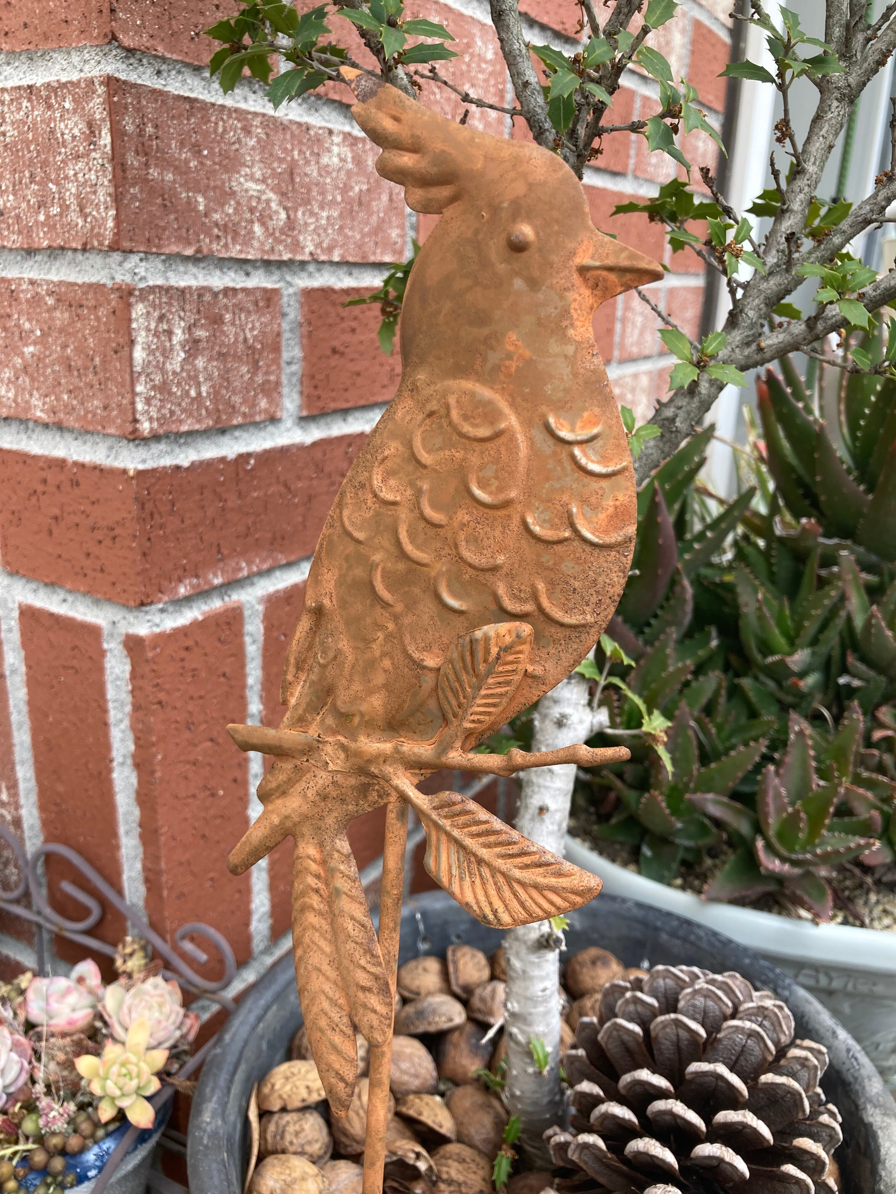 鳥さんガーデンピック。なんとも言えない愛嬌ある表情に心が和みます。花壇や鉢に挿してお庭を素敵に演出♪