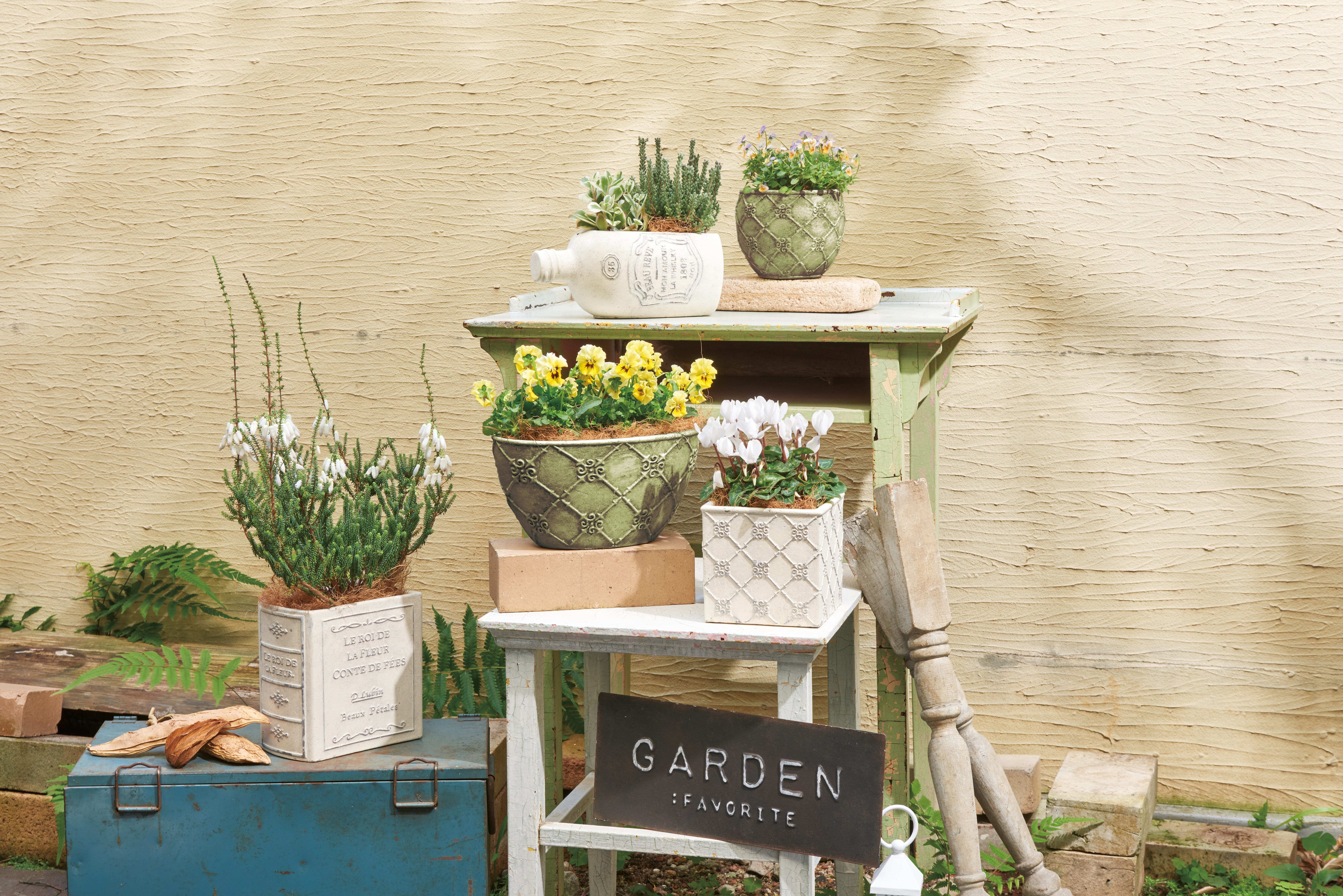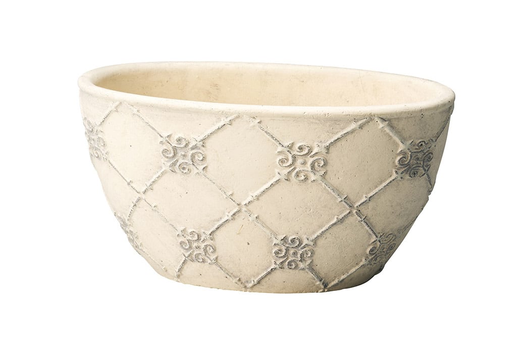 クラシカルでエレガントな風合いのフラワーポット。オーバルタイプです。