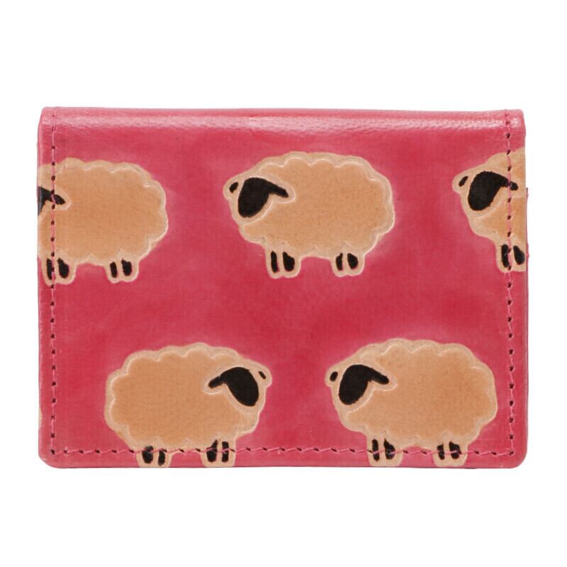 <フェアトレード> 山羊革 カードケース ひつじ柄(ピンク)